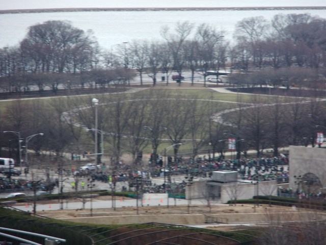 On March 12, lots of people congregated at The Bean, while others were hurrying to the parade that would start a block away.