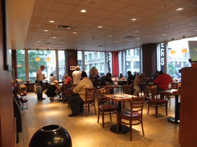 A State Street view SE from the cafe: Macy’s, no longer Marshall Fields. Irony?