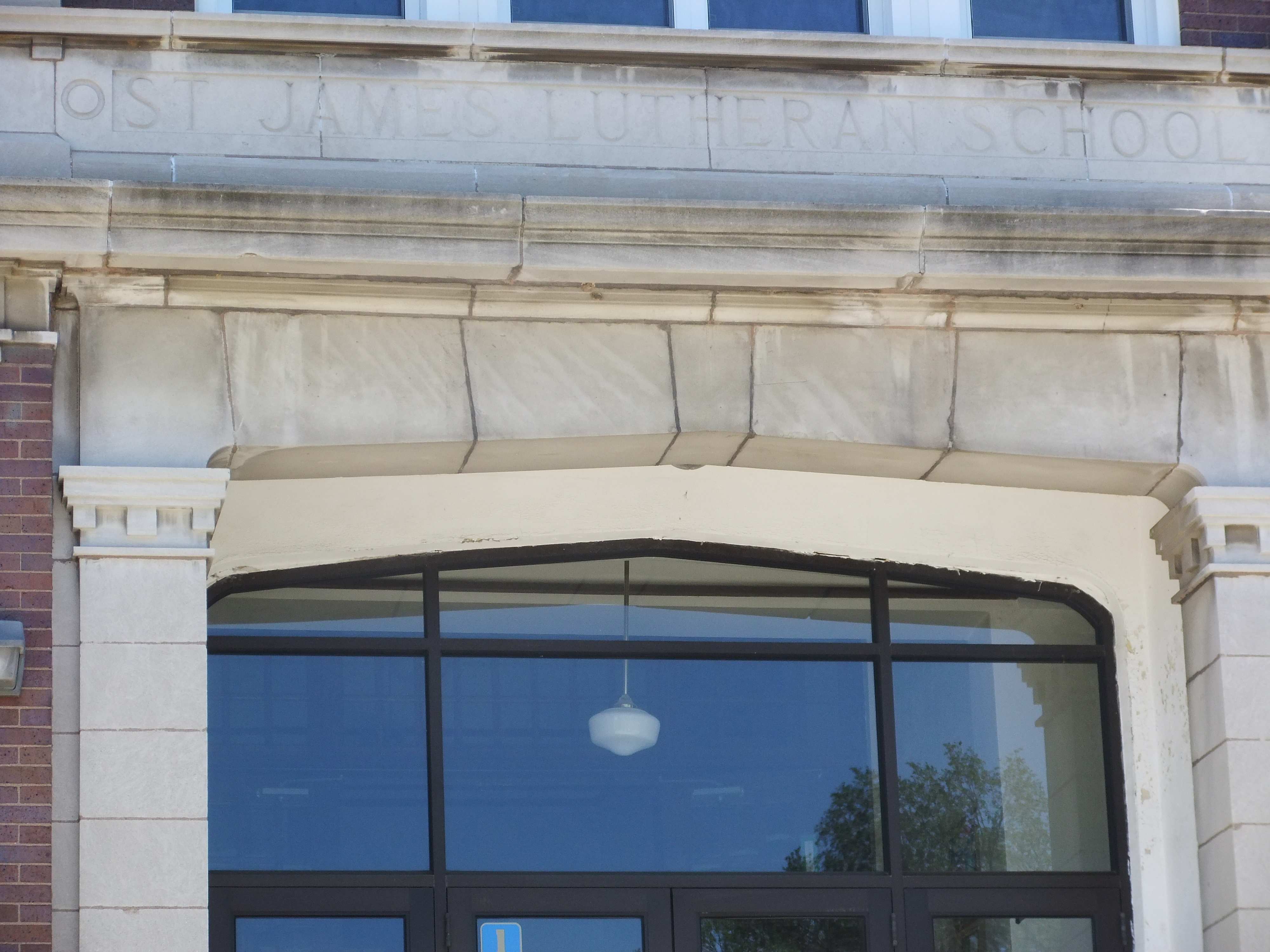 I walked up to the bottom steps and was thrilled again to make out the name of the school embedded in the stone high above the door. Look closely.