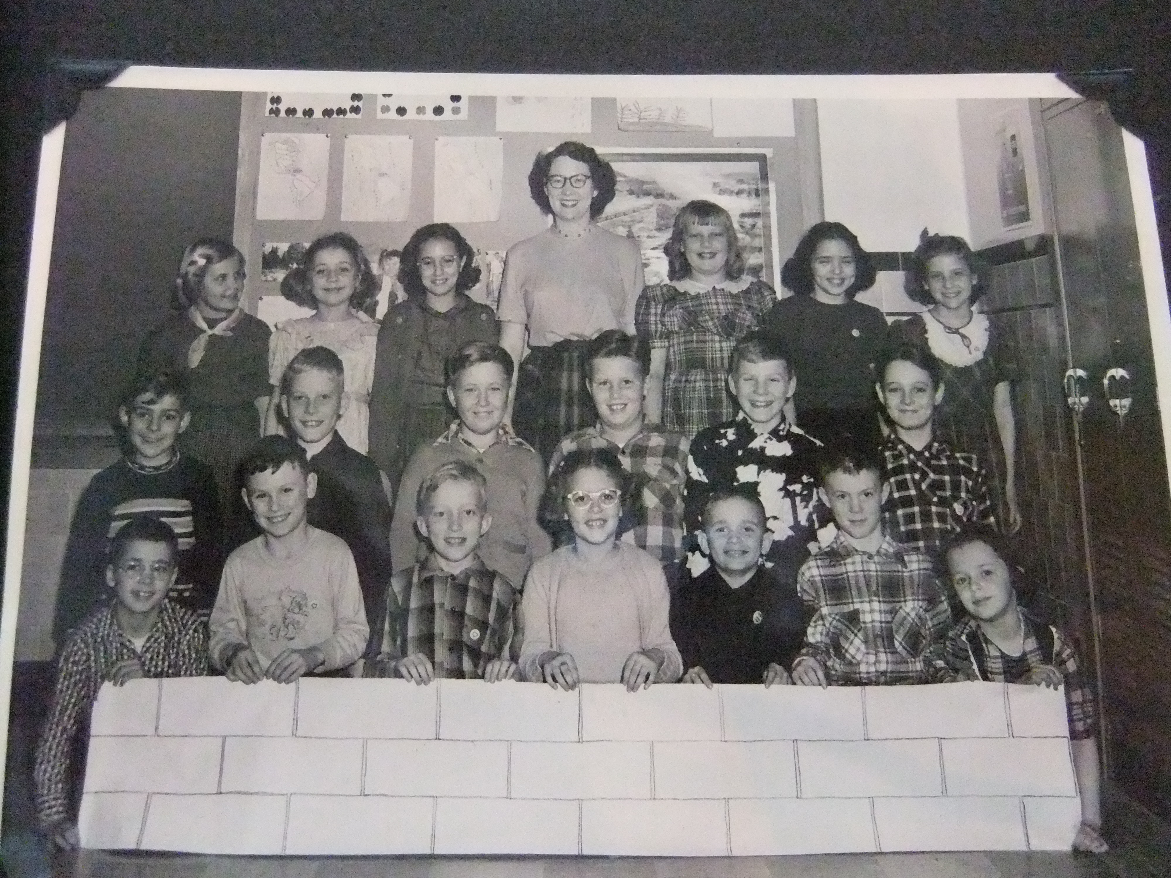 My fourth grade class. I’m on the upper left, apparently not obeying instructions to look ahead at the photographer. Note the stylish scarf around my neck.