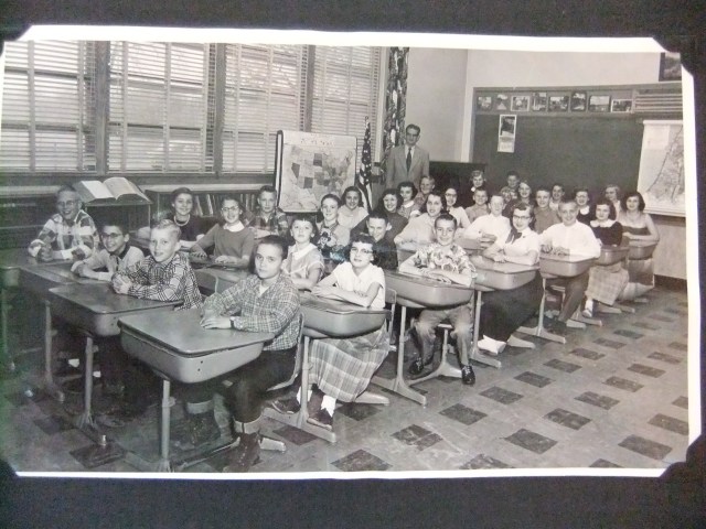 My seventh grade year was to be my last at Lafayette Christian. That summer my dad accepted a call to Cutlerville Christian Reformed Church, just outside Grand Rapids, Michigan. On the picture below, I’m sitting to the teacher’s left, wearing a black sweater with an overlay of a white leather-like collar that I thought was just the classiest.