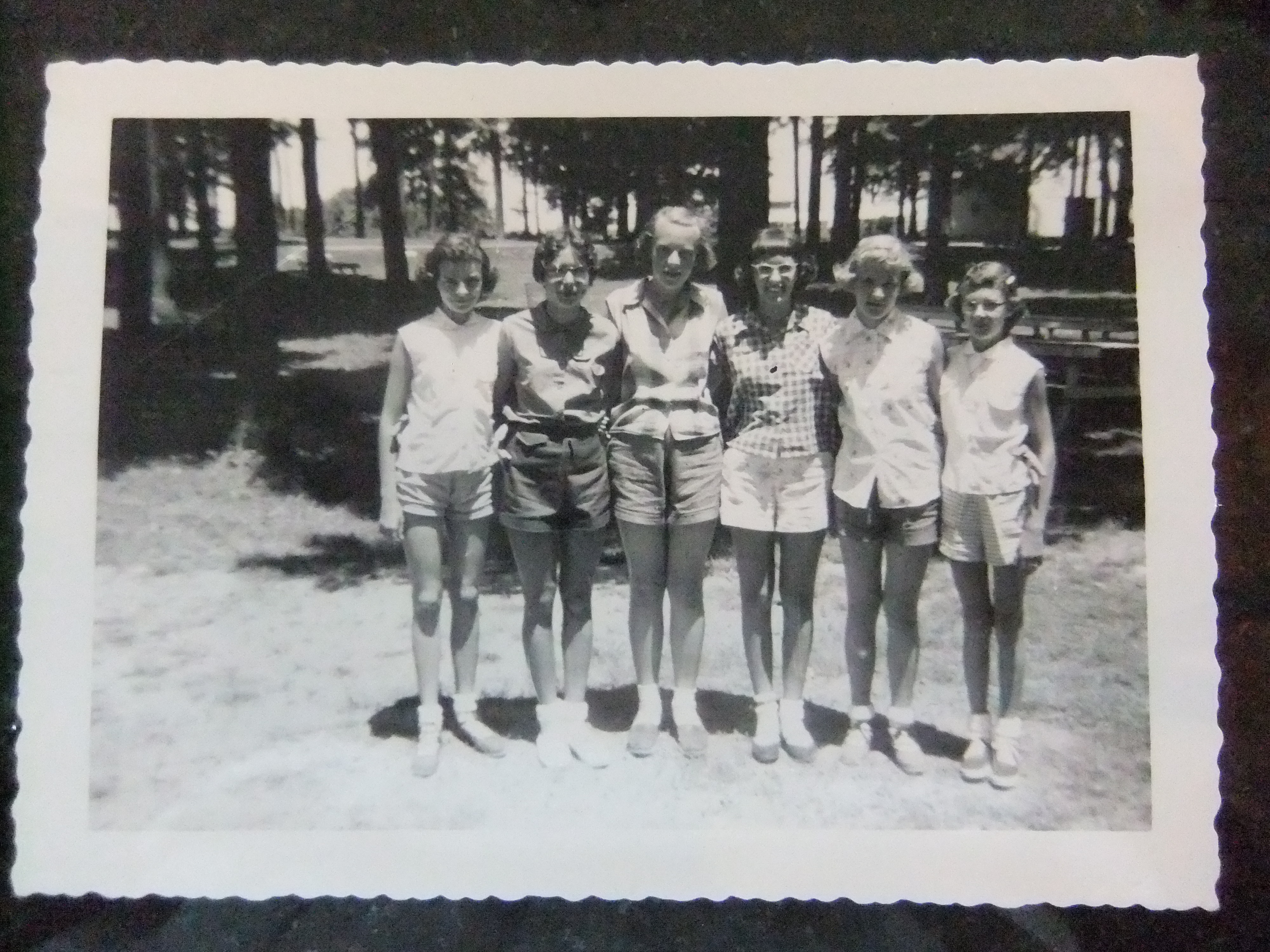 Plus I have a picture of all of us–I’m second from right. My hair? I must have been putting it up in those brown rubber discs that opened up and folded over your wet hair to make a tight curl when combed out. Earmuffs, anyone?