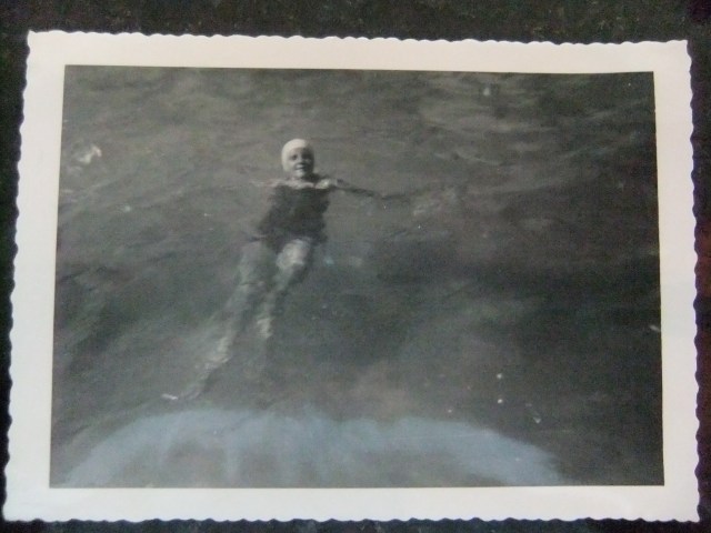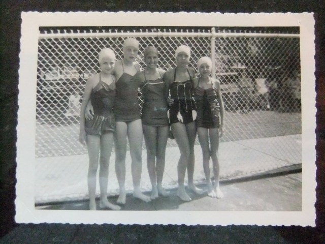 And I have a picture of me in the pool. Too bad it’s not in color or you could see the bright aquamarine of its chlorination. Remember wearing those tight bathing caps with a strap under your chin? My suit was black or navy with a little ruffle across the top.
