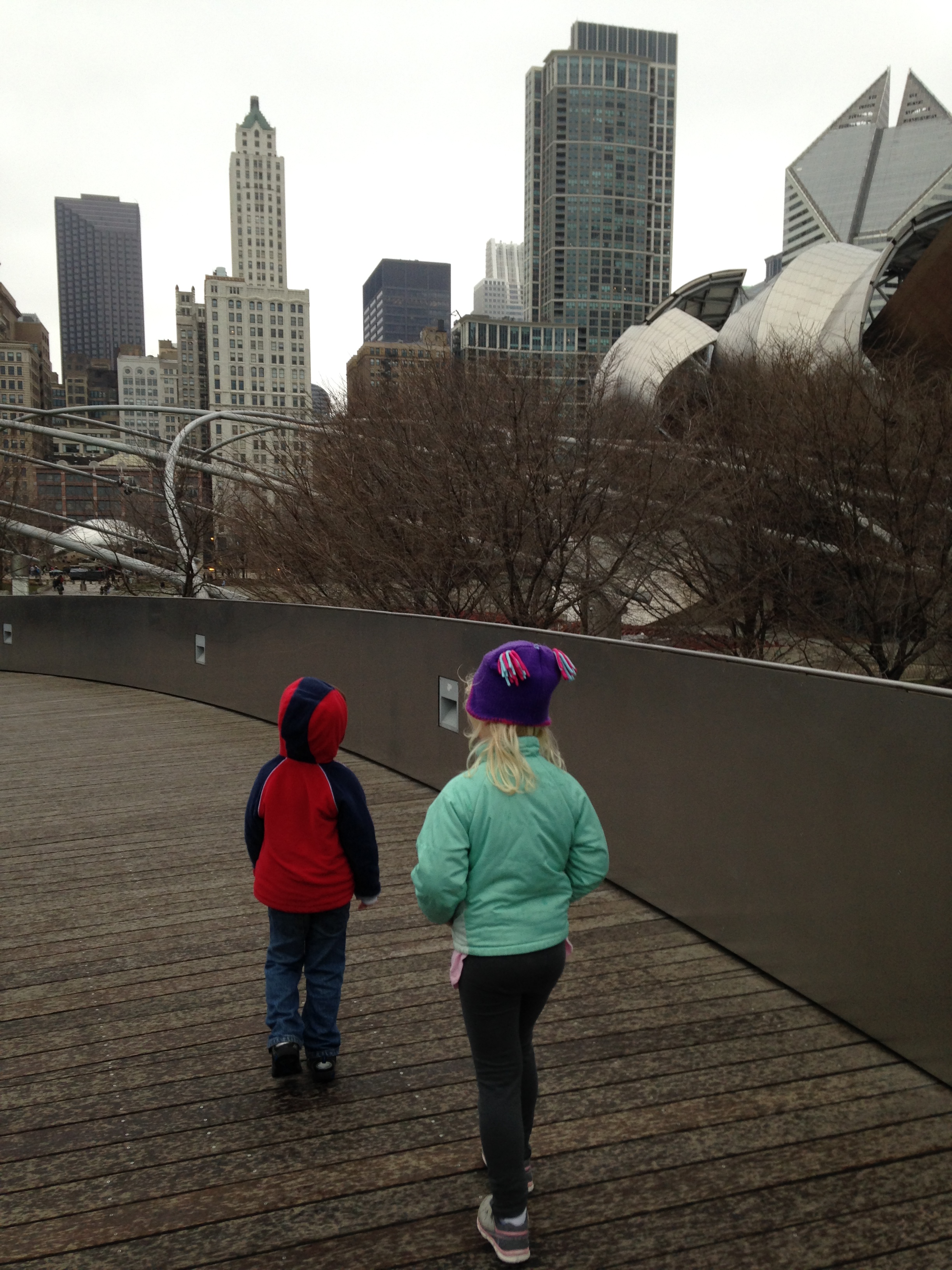 You were over to visit this afternoon and I have to jot you a note. You are spending Christmas at Auntie Donna’s and seeing your dad’s family. But today your folks drove down here so we could see you on this trip. I wanted to have you all to ourselves, so I’d told your folks they’d have to leave. Grandpa and I wanted to take you to the new Maggie Daley Children’s Park just east of Millennium Park.