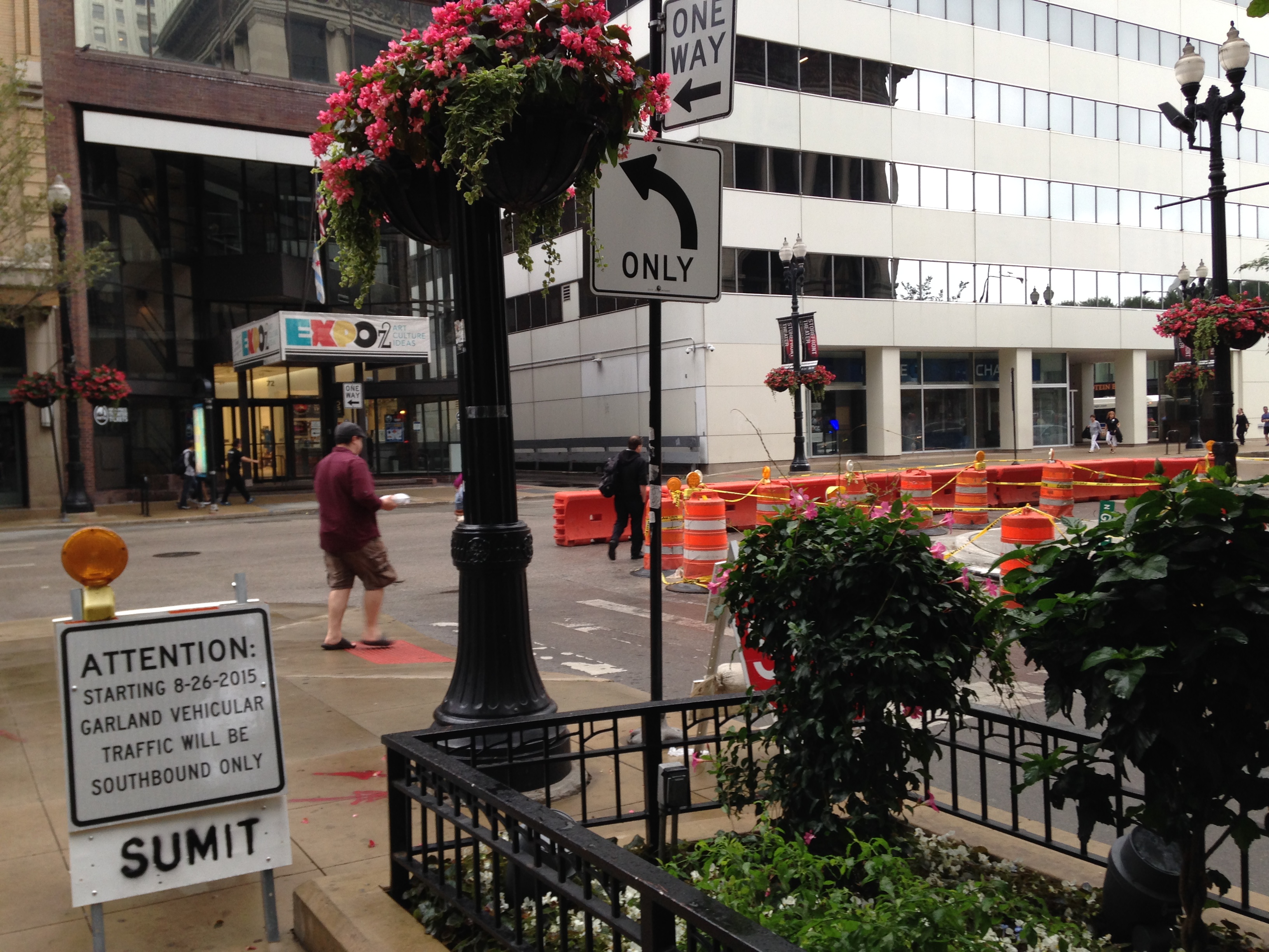 We were going out the other day, my husband driving, and I told him he could get the car, and I’d be down in a minute. Oh, that no longer works, he told me, because he can’t park in front of the building anymore to wait. Now that the street goes the other way, there’s no place for him to wait. So, drastic circumstances, I have to make sure I’m down there seconds after he leaves to get the car.