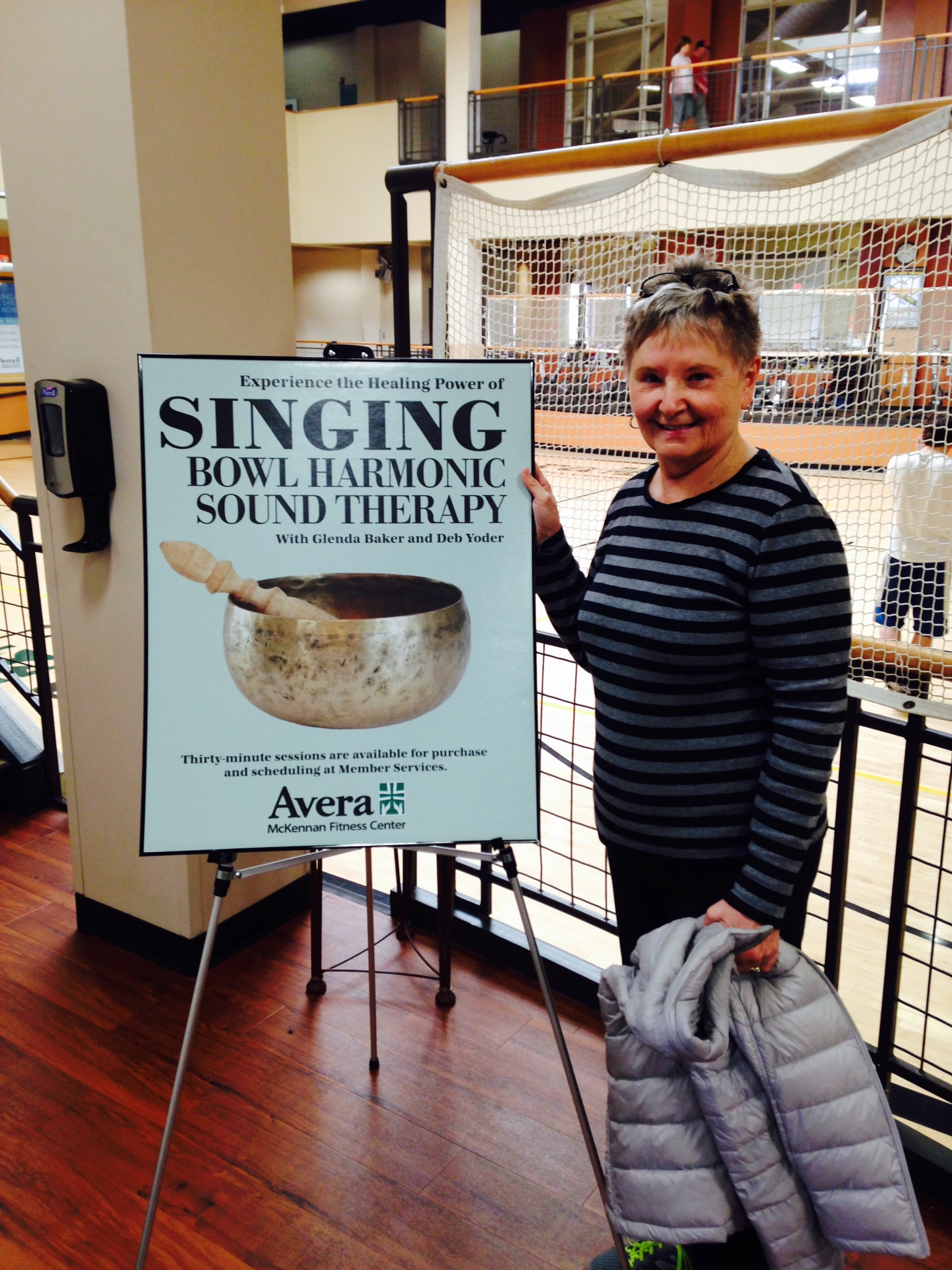 Taken during that visit to my daughter,trying “singing bowls” to relieve my pain