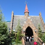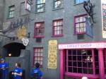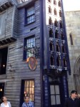 We did two rides–one in Hogwarts Castle and one in Diagon Alley. Both had the precautions if you are elderly or whatever, but we did them anyway. At Hogwarts Castle, we played quidditch with Harry flying on his broom chasing dragons and in Diagon Alley we (I think) escaped the Gringotts in the bank building.