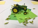 The tables at the church were decorated with John Deere green napkins and the centerpiece was a cut apple display honoring Marv’s apple picking and applesauce-making hobby. I’ve heard Darlene from church was responsible for that personal touch. Thanks, Darlene!