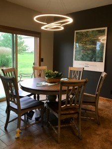A few weeks later, I bought a new dining set. While writing thank-you cards, my legs went numb at our counter height table. We’d needed that height in our Chicago condo with our view of Lake Michigan, but I do not need that height here to look at grass. My daughter advertised the set while I shopped. When it didn’t sell before my new set was to be delivered, I donated it to the thrift shop that supports my grandchildren’s school. I could hear Marv tell me that my old set was perfectly good (it was), but I could also hear him say, “I always loved your independence…” so, my purchase was meant to be, right?