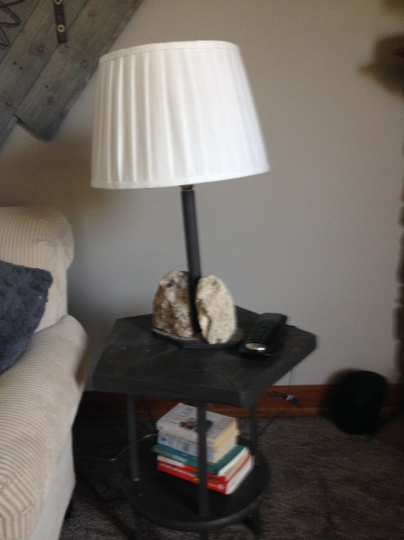 After nearly sixty years of living with homemade furniture, I went online and ordered a new end table and lamp. Marv always said that was the beauty of him making our furniture: “If Lois gets sick of it, she can get rid of it. I have little money invested in it.” I didn’t forget this, of course, so yesterday, I made good on his offer.