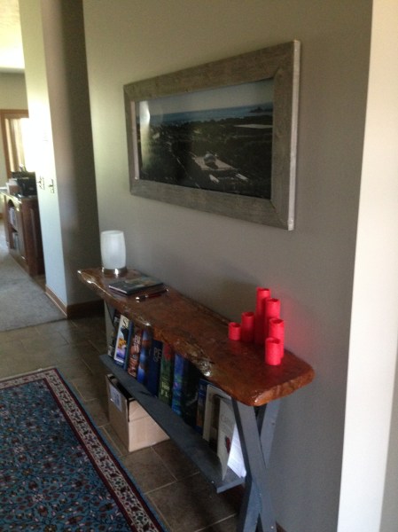 The driftwood piece he dragged from Lake Michigan on our honeymoon. Water logged, it took months to dry out. But then, over the years, it served as a shelf in several bookshelves, a headboard, and finally as a foyer table. Marv loved quizzing guests about its origin.