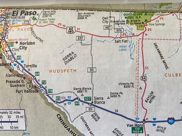 She sat in her blue recliner in her living room, watching the snow fall out her patio doors, and followed along with us in her Atlas. She’d look ahead and tell us what towns were coming up, their populations, and if there was anything of interest to see there. If it was time to eat or sleep, she’d cue us in on restaurants and hotels. In turn, I’d send her photos. We had an ongoing dialogue that was ever so much fun.