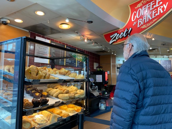 Then we’d head to the food court by Concourse C, and he’d get a frosted cinnamon roll (lower left corner of bakery case) and black coffee. I’d look for something healthier and usually settle on yogurt.